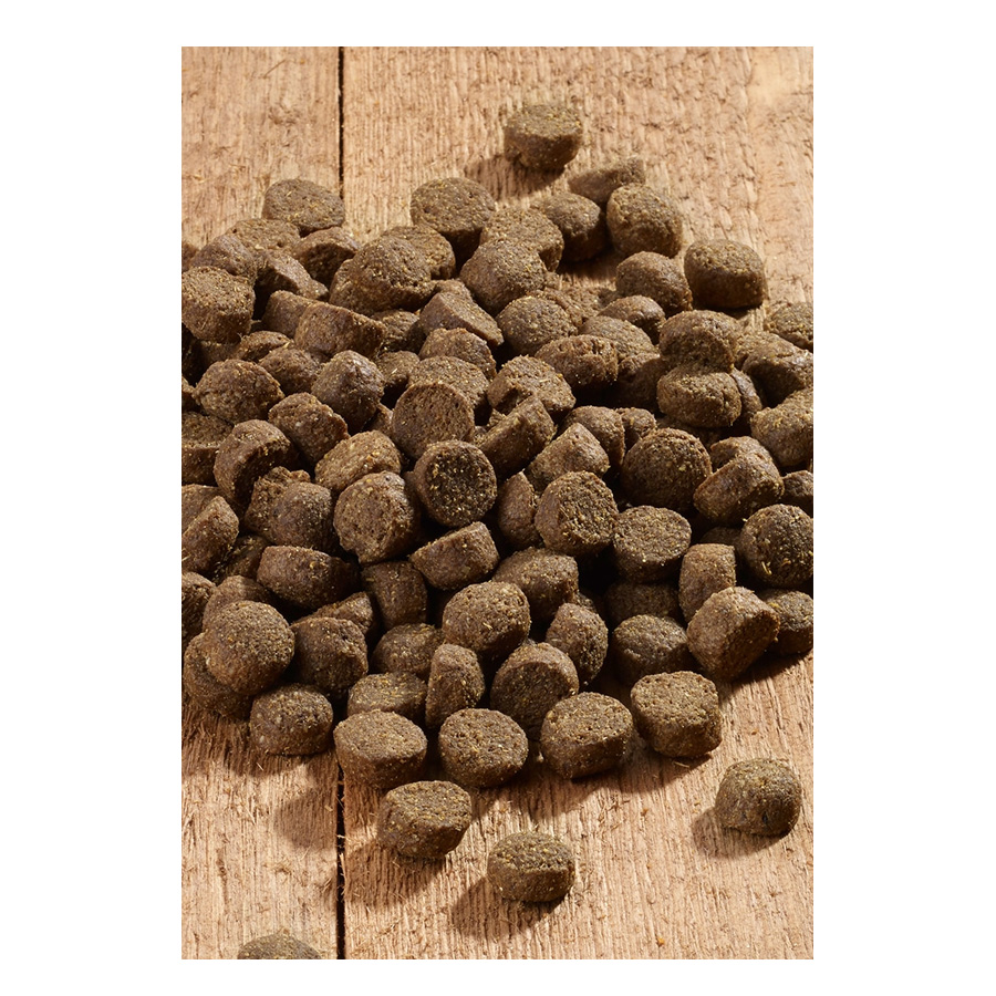 Mäso a vedľajšie živočíšne produkty (múka z hydinového a jahňacieho mäsa), gabonafélék (jačmeň ),vedľajšie rastlinné produkty (celulóza, sušené repné rezky), ryby a vedľajšie produkty z rýb (múka z morských rýb), oleje a tuky , zelenina (mrkva*), semená (ľan), vajcia a produkty z vajec (sušené vajcia celé), minerálne látky, droždie*, riasy*, liečivé byliny *, výťažky z kvasníc* (zdroj mannánových oligosacharidov), zelené ústrice * (Perna canaliculus)